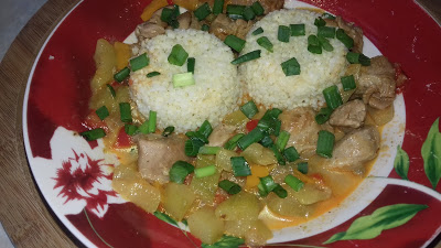 Polecam pyszny gulasz z indyka podany z kaszą jaglaną.