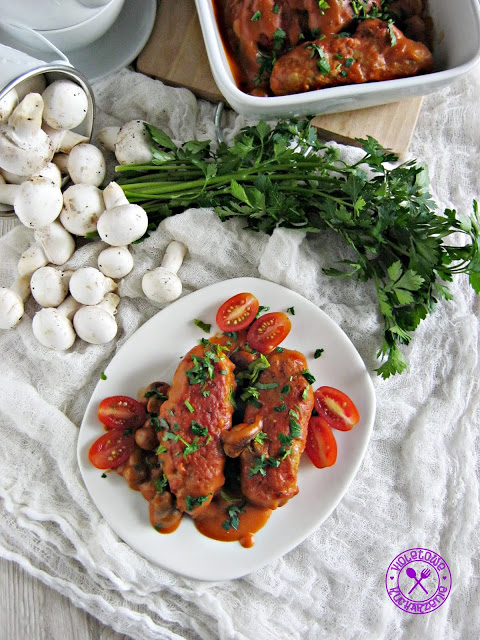 Roladki z mięsa mielonego w sosie pomidorowym z pieczarkami