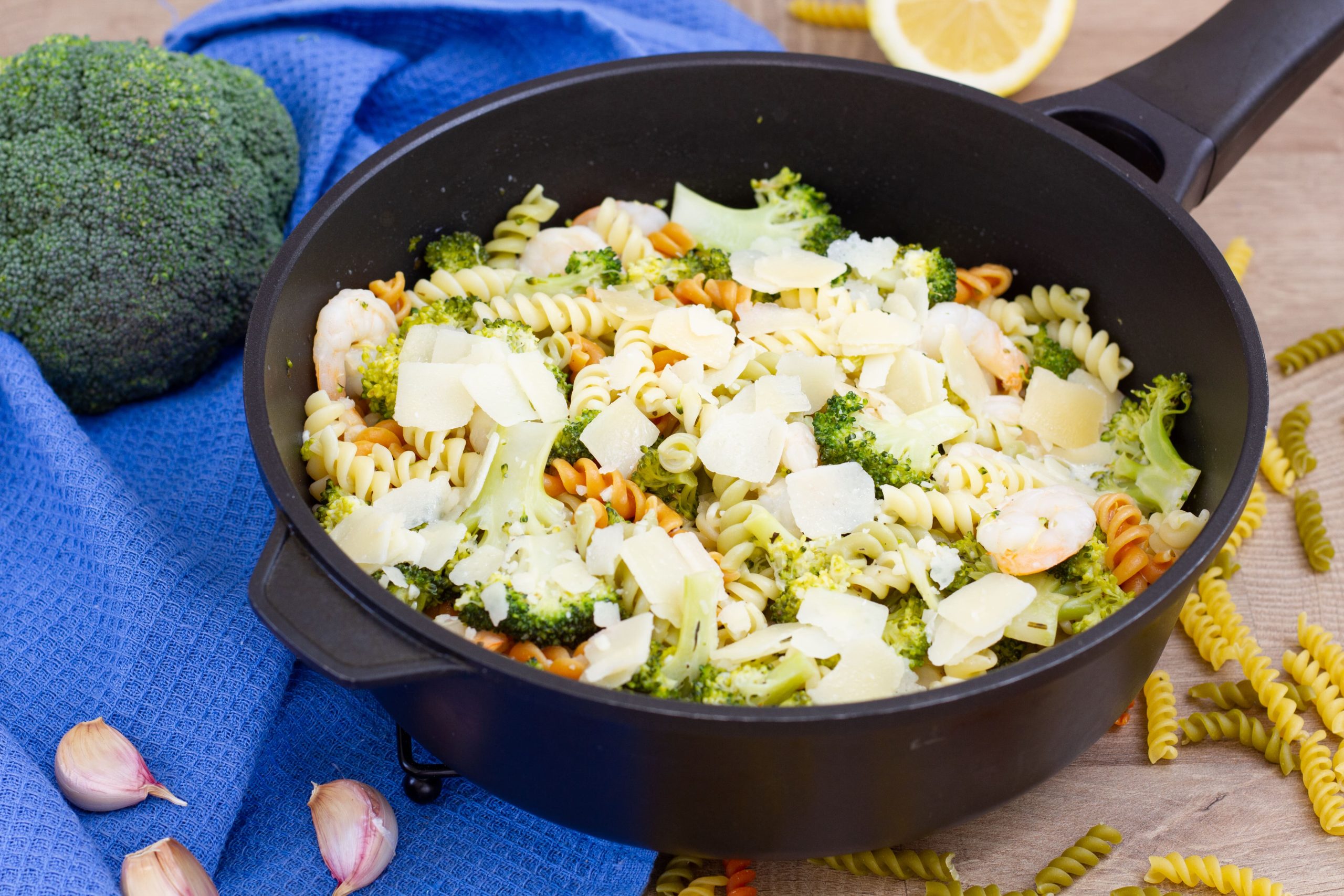 Makaron z brokułem i krewetkami w sosie na bazie serka mascarpone to…