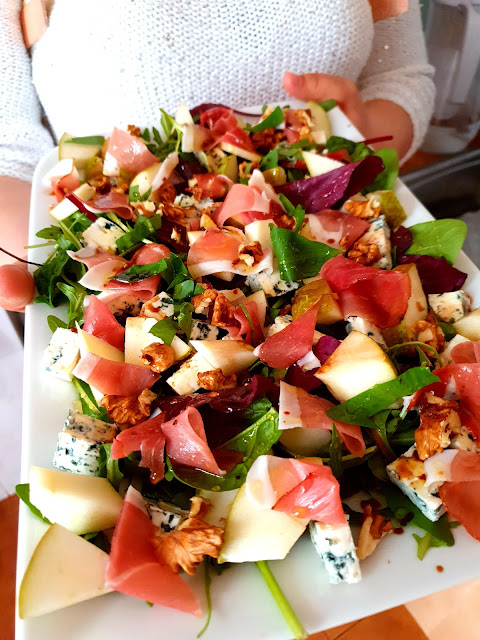 Sałatka z szynką parmeńską, gruszkami i serem pleśniowym.Pomysł na pyszną sałatkę z…