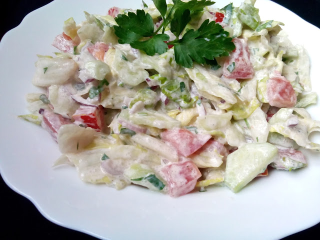Szybka i banalnie prosta surówka do obiadu. Wystarczą tylko trzy składniki sałata,