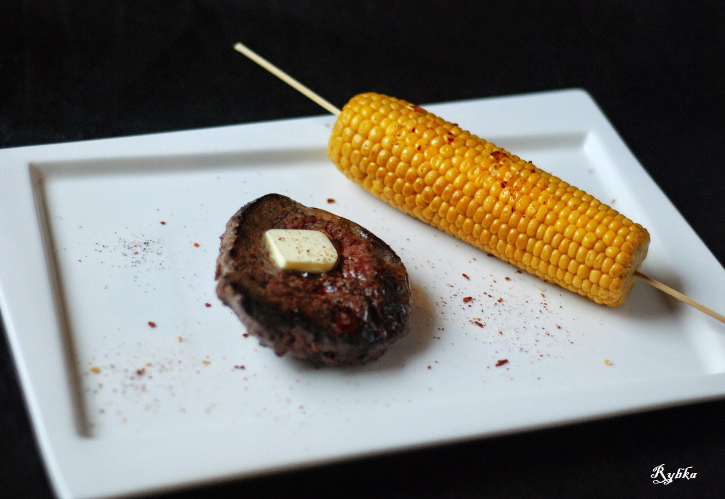 Stek wołowy półkrwisty+wysmażony z kukurydzą