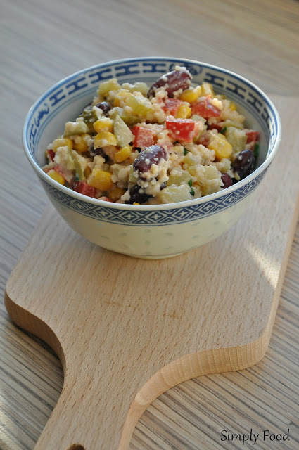 Bardzo smaczna i szybka do wykonania sałatka z kuskusem. Dzięki kaszy jest bardziej syta przez co świetnie nadaje się na drugie śniadanie, przekąskę do pracy lub kolację. Z kolei warzywa sprawiają, że jest kolorowa i apetyczna, aż chce się ją „jeść oczami” 🙂