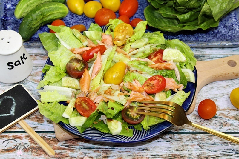 Prosta sałatka z wędzonym łososiem, świeżym ogórkiem i pomidorkami koktajlowymi to lekka…