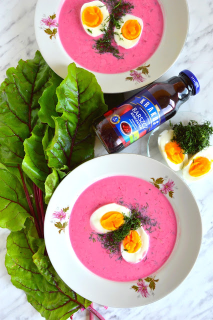 Wierzcie mi, taki chłodnik jest warty grzechu 😉 Jest rewelacyjny w smaku i trudno nie sięgnąć po dokładkę.Wspaniałym dodatkiem jest koncentrat barszczu Krakus. Dodaje nie tylko smaku, ale również sprawia, że nasz chłodnik ma idealny różowy kolor. Wszystko tak pięknie wygląda na talerzu, że aż szkoda zabrać się za