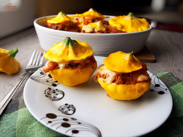 Muszę się przyznać, że patisony to ja jadałam do tej pory marynowane, ale ostatnio znajomi z zaprzyjaźnionego centrum ogrodniczego Kaldera obdarowali mnie kilkoma dorodnymi okazami. Szkoda, żeby się zmarnowały więc musiałam coś wykombinować. Poszukałam inspiracji w sieci, trochę pokombinowałam i tak o to powstały patisony faszerowane