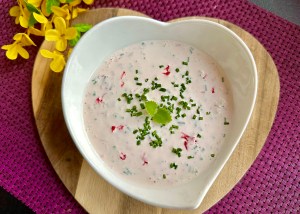 5 łyżek twarogu półtłustego2 jaja4 łyżki mąki pszennej pełnoziarnistejszczypta proszku do pieczenia1 pomidor100g piersi kurczakaprzyprawy: suszony koperek, czosnek