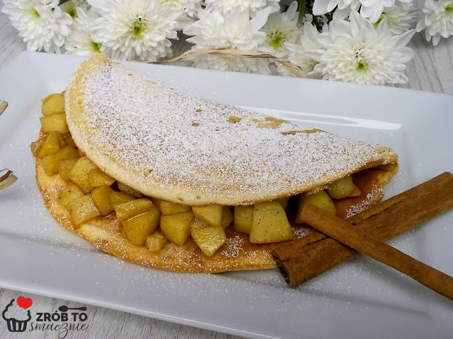 Puszysty, delikatny omlet z karmelizowanymi jabłkami. W zasadzie taki omlet można przygotować z każdymi innymi ulubionymi owocami, konfiturą czy bitą śmietaną. Jego przygotowanie zajmuje dosłownie chwilę. Pyszny deser zarówno na ciepło jak i na zimno. Doskonale smakuje również podany z lodami 🙂