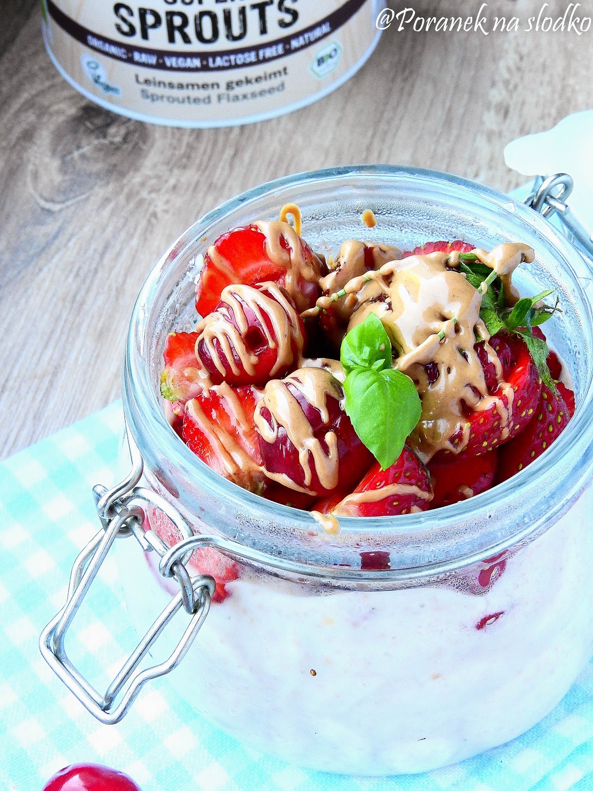5 łyżek ryżu arborio (dobrze sprawdzi się też jaśminowy)250 ml mleka sezamowego100 ml mleka kokosowego biołyżka masła kokosowego kopiasta łyżeczka mąki kokosowej bioszczypta soli2 łyżki syropu klonowegołyżka kiełkującego lnu (Pur Ya!)truskawki