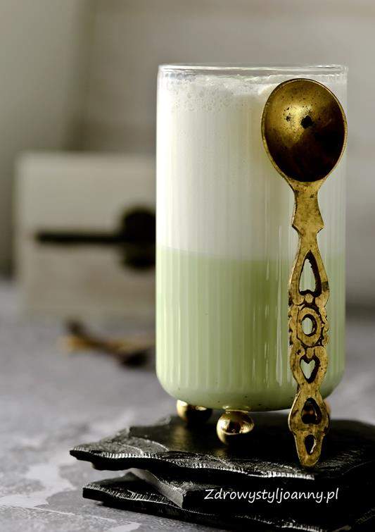 Zielona matcha latte. Ciepła zielona matcha latte to kojący napój, który z…