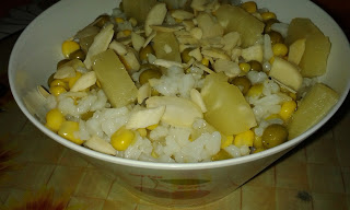 Ryż- 100 gAnanas z puszki- 6 krążkówGroszek zielony – ½ puszkiKukurydza –…