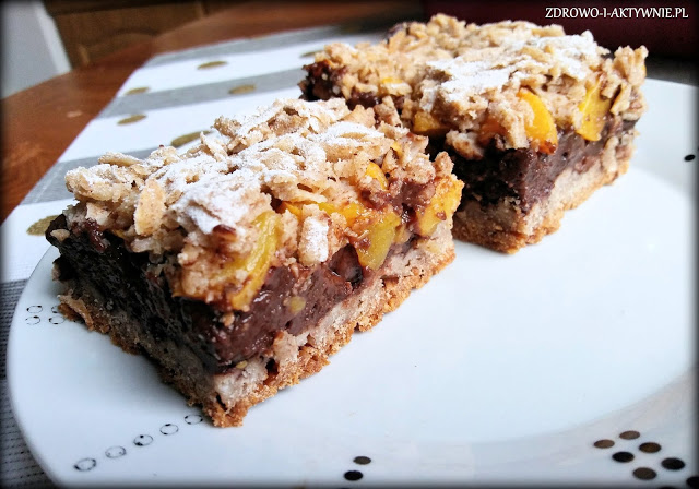Budyniowiec z brzoskwiniami i kruszonką