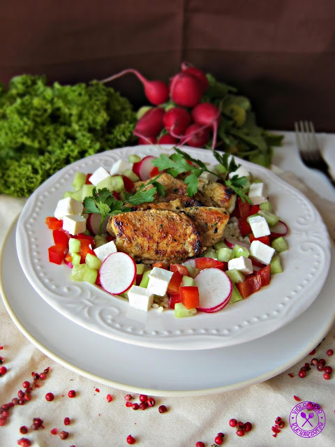 Kilka prostych składników sprawia, że powstaje nam pyszny i sycący obiad. Aromatyczny kurczak, chrupiące warzywa, słonawy ser i smaczna kasza – rewelacja!