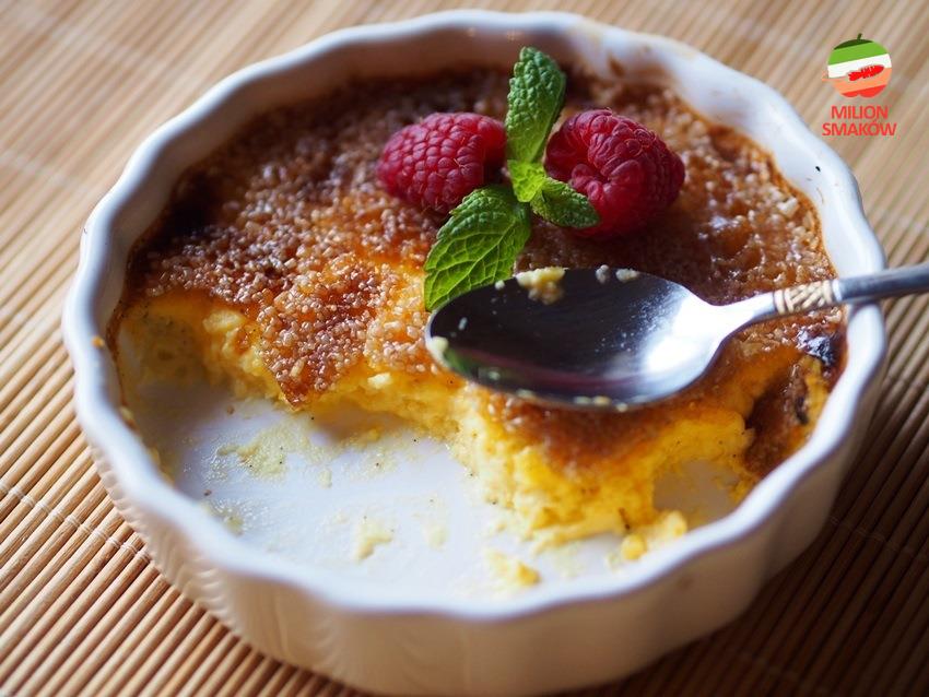 Crème brûlée to z francuskiego „przypalona śmietanka”. Mimo francuskiej nazwy ten deser pochodzi z Wielkiej Brytanii albo Hiszpanii albo może jednak z Francji. Jak to często bywa rodowodu dań z tak długą historią nie można już teraz ustalić. Faktem jest, że po raz pierwszy został umieszczony w książce kucharskiej przez