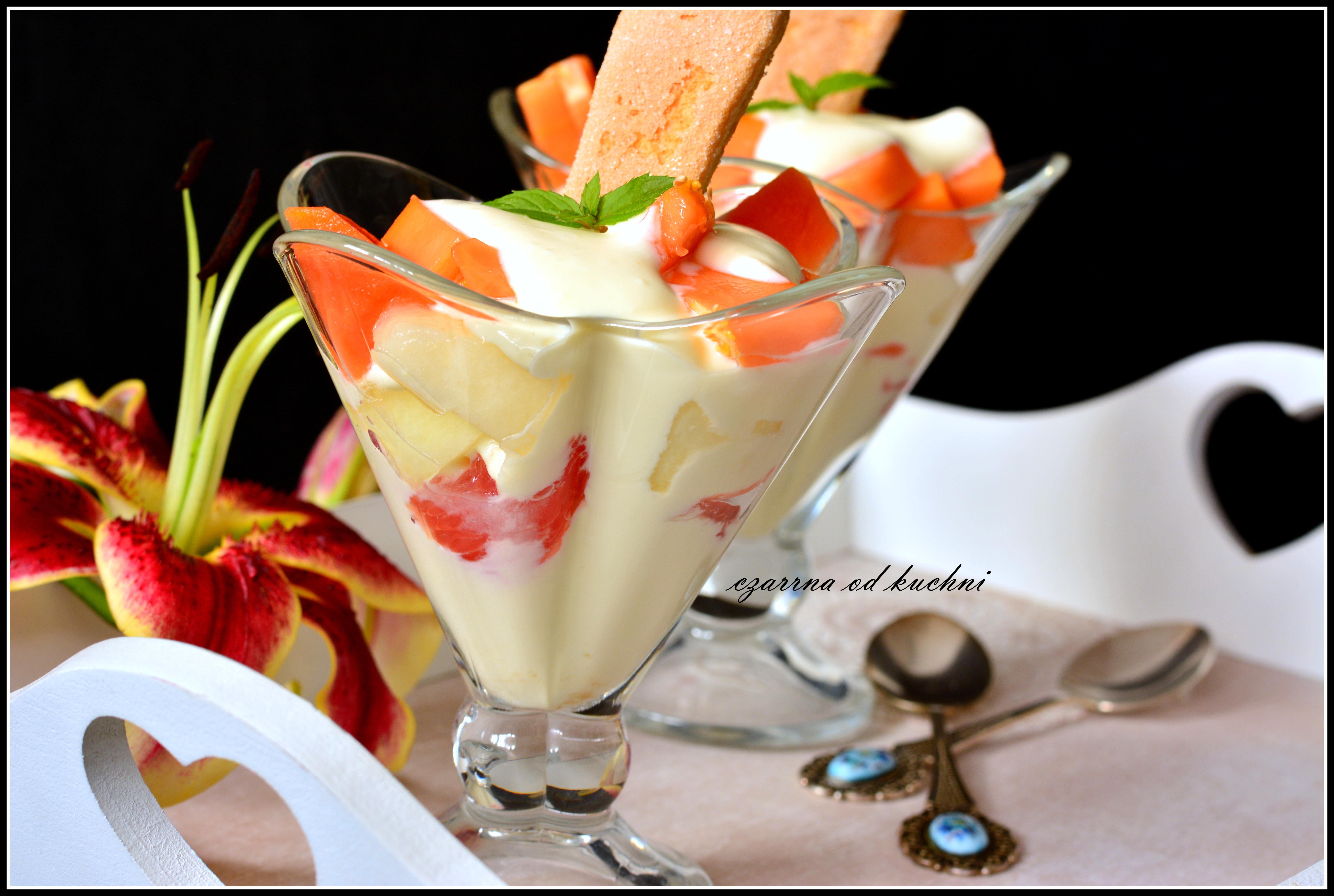 Składniki: 200 ml śmietany 30% 2 małe serki waniliowe, po 150 g 1/2 melona 1/3 papai 1/2 grejpfruta biszkopty Przygotowanie: Owoce obrać, pokroić w kostkę, często grejpfruta obrać ze skórki, … Czytaj dalej Deserek z owocamiegzotycznymi