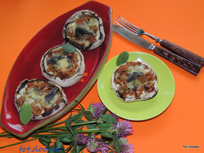 Pieczarki z mięsem i serem