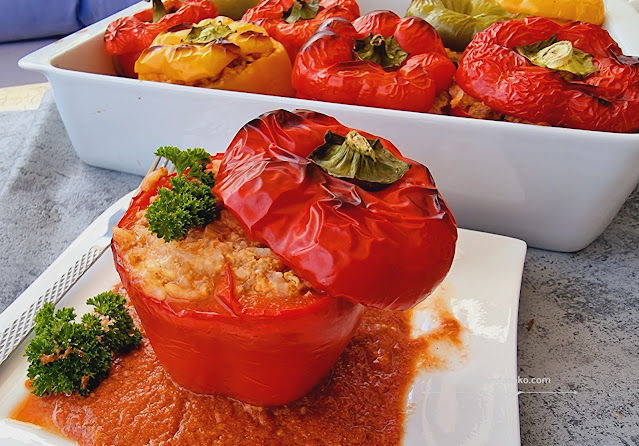 Pyszna papryka, z farszem gołąbkowym i pomidorowym sosem, idealnie sprawdzi się na…