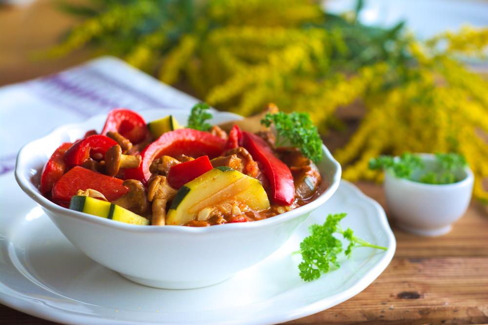 Leczo, danie kuchni węgierskiej, na dobre rozpanoszyło się na polskich stołach. Zazwyczaj kaloryczne, z dużą ilością mięsa i kiełbasy. Dziś zamiast tłustego i zawiesistego leczo, mam propozycję lekkiego i warzywnego dania. Kurki z powodzeniem zastępują pieczarki, zaś soczewica zagęszcza danie i sprawia, że leczo staje się pełnowartościowym posiłkiem. Przygotowuje się