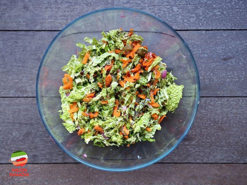 Klasyczna surówka, która w podobnej wersji od lat pojawia się na polskich stołach. I dobrze, bo to połączenie wyraźnych smaków, które się uzupełniają. Słodka marchewka, ostra szalotka, kwaśne ogórki – a wszystko świeże i chrupiące.