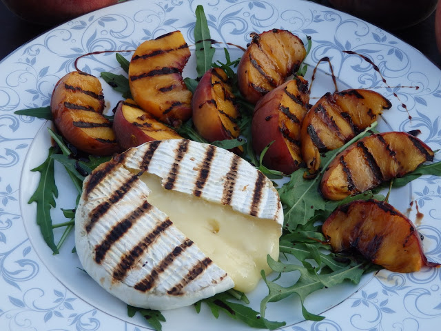 Pyszny rozpływający się camembert w towarzystwie słodkich brzoskwiń i rukoli. Po prostu prawdziwa uczta. Serek i brzoskwinie można grillować na tradycyjnym grillu lub patelni grillowej.