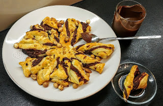 Pochmurne dni trzeba sobie jakoś umilać. Najlepiej jakimś pysznym jedzonkiem. Dzisiaj tak właśnie było. Pyszny, dwudaniowy obiad, no i szybko zrodziła się też ochota na jakieś słodkie co nieco. Ciasto francuskie czekało w lodówce, dokupiłam gotowy krem orzechowo- czekoladowy, którego w moim domu raczej się nie je, ale tutaj spisał