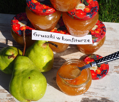 Dziś chciałabym podzielić się z Wami przepisem na przepyszną konfiturę z gruszkami, znalezioną w przepisach „Świat kobiety”. Zrobiłam kilka małych słoiczków i znikają w mgnieniu oka, będę musiała zrobić powtórkę 😉 W oryginale konfitura wydawała mi się zbyt słodka, więc zrobiłam lekką modyfikację – zmieniłam kolejność dodania skórki cytrynowej i