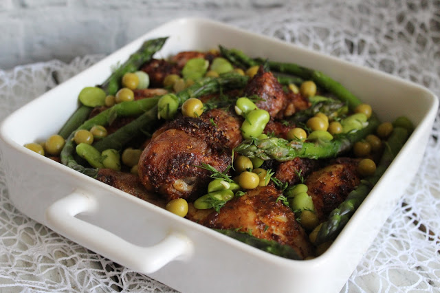 PAŁKI KURCZAKA ZAPIEKANE ZE SZPARAGAMI I BOBEM