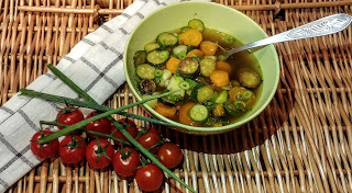 Taka trochę „śmieciowa” zupka. Pełna smaku i aromatów, z moją ukochaną cukinią w roli głównej. Kiedyś dyskutowałam z koleżanką, która twierdziła, że na co, jak na co, ale że cukinia na zupę się nie nadaje, że jest mdła, że zupa wychodzi nieprzyjemnie słodkawa… Wysłuchałam z cierpliwością, ale jakże się z