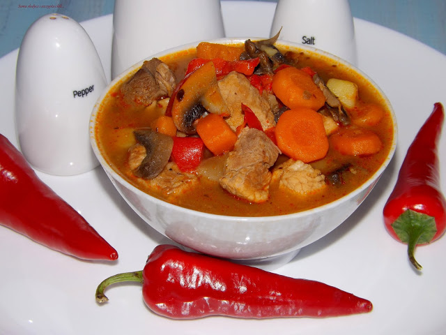 Witajcie 🙂 zapraszam dzisiaj na pyszną aromatyczną zupę gulaszową. Do zupy użyłam…