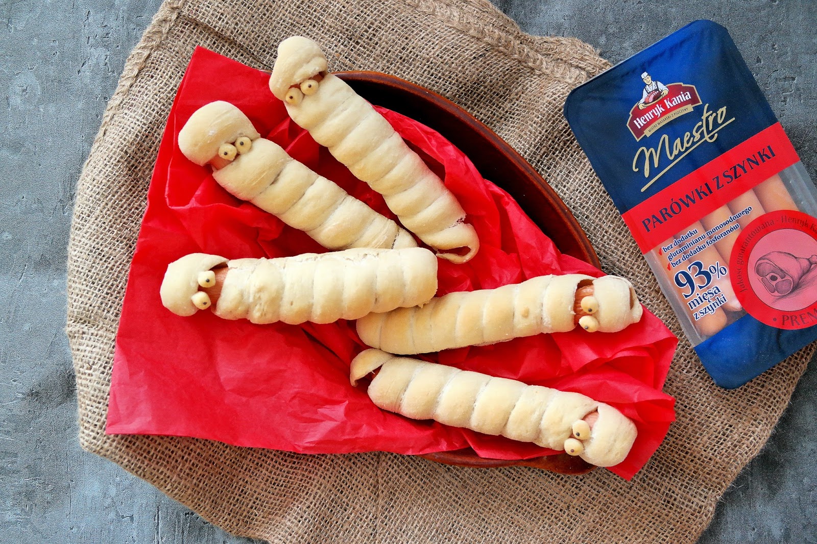 Halloween to świetna okazja, aby przygotować w kuchni przestraszne przekąski i smakołyki angażując w ten sposób swoje dzieci lub dzieci sąsiada, kuzyna, ciotki, wujka, jak uważacie! :DMumie są smaczne, chrupiące i przepyszne. W dodatku estetyczne ich wykonanie będzie naprawdę świetną ozdobą stołu. Możecie podać je zmarzniętym dzieciom, które będą przechadzały