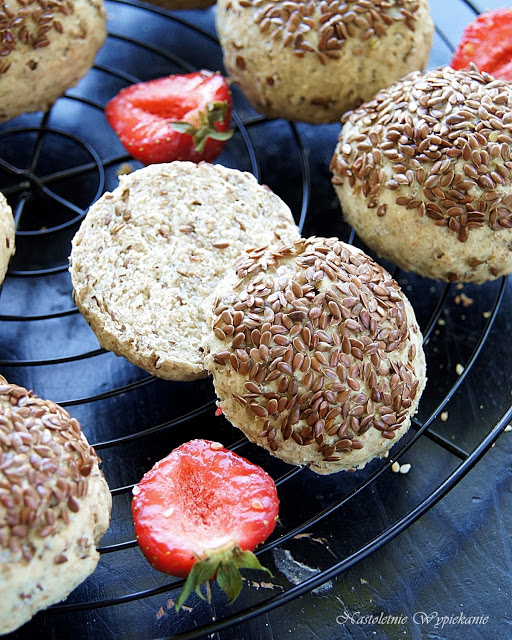 Pszenno-razowe bułeczki drożdżowe ze sporą ilością siemienia lnianego w środku i na zewnątrz. Bardzo dobrze spiszą się na śniadanie. Kto wie, może i Wasze dzieci polubią nasiona lnu, którym właściwości zdrowotnych nie brakuje!