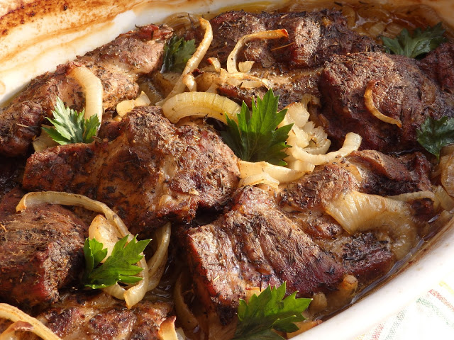 Pyszna karkówka pieczona z cebulą. Mięsko można doprawić ulubionymi przyprawami. Ja wybrałam czubrycę zieloną, tymianek i słodka paprykę.
