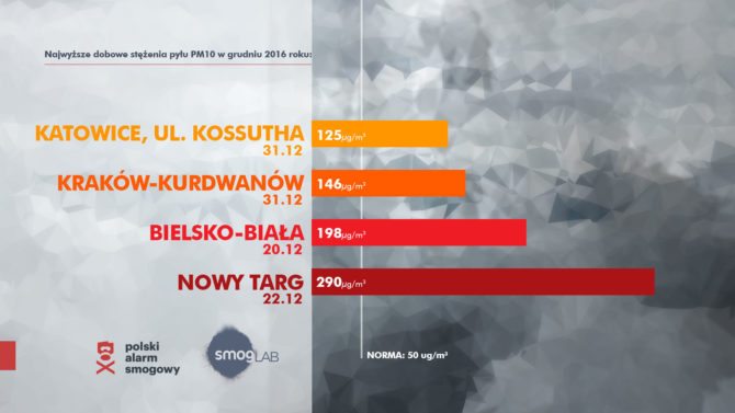 W zimie, Polskie media trąbią na okrągło o smogu. Ostrzegają, że w Krakowie czy Warszawie stężenie pyłów i rakotwórczych związków jest tak duże, że lepiej nie wychodzić… Sądzicie, że mieszkańcy tych miast mają źle? Jeśli w Krakowie lepiej nie wychodzić z domów, to w moim rodzinnym mieście (Nowym Targu) lepiej