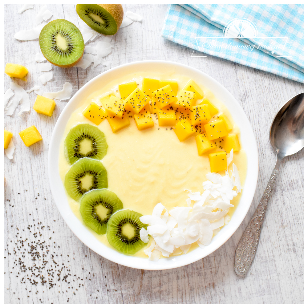 1 duży banan,1 szklanka mrożonego mango,1 szklanka mrożonego ananasa,1/3 szklanki mleczka kokosowego…