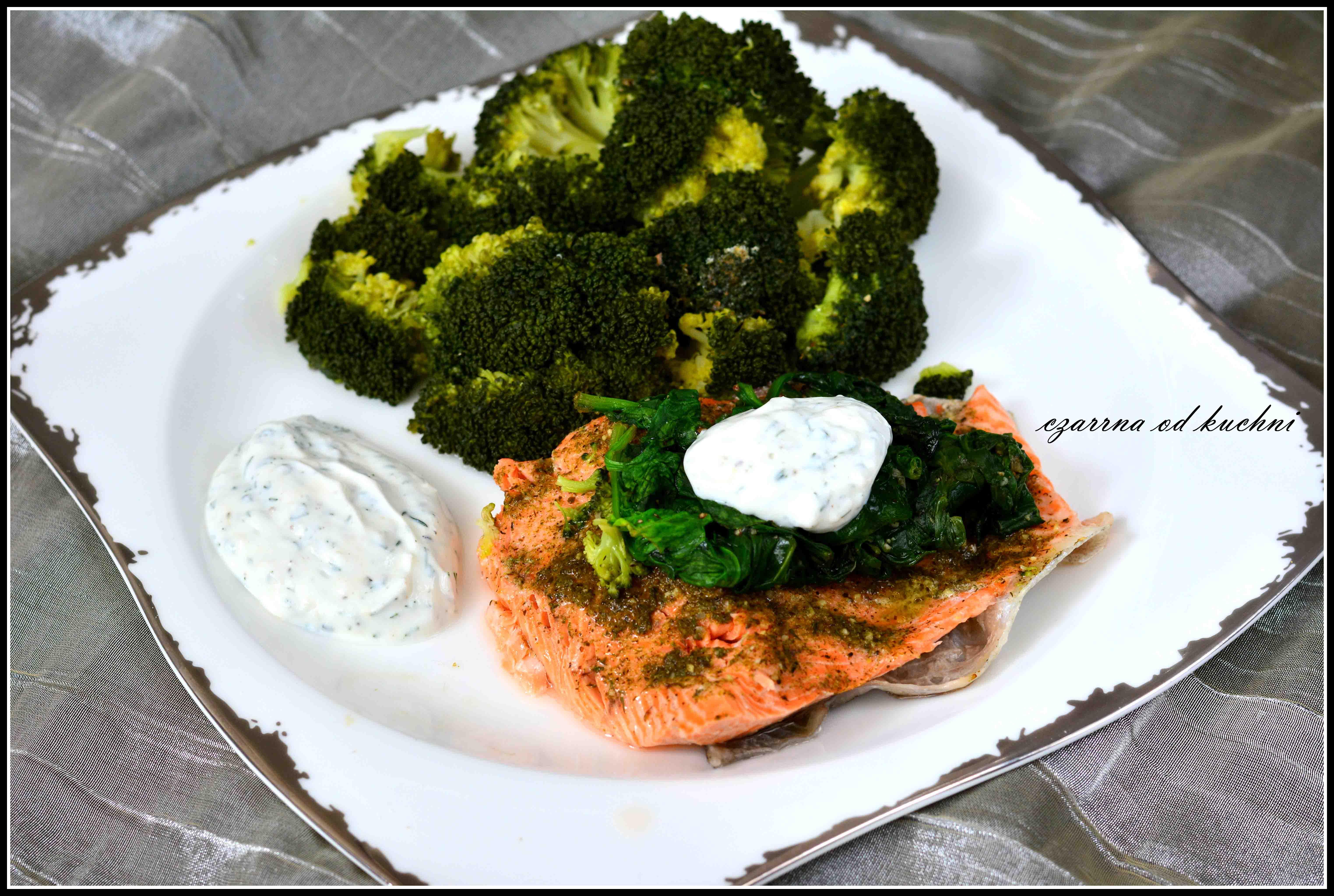Składniki 2 kawałki łososia ze skórą 1 brokuł 250 g szpinaku 3…