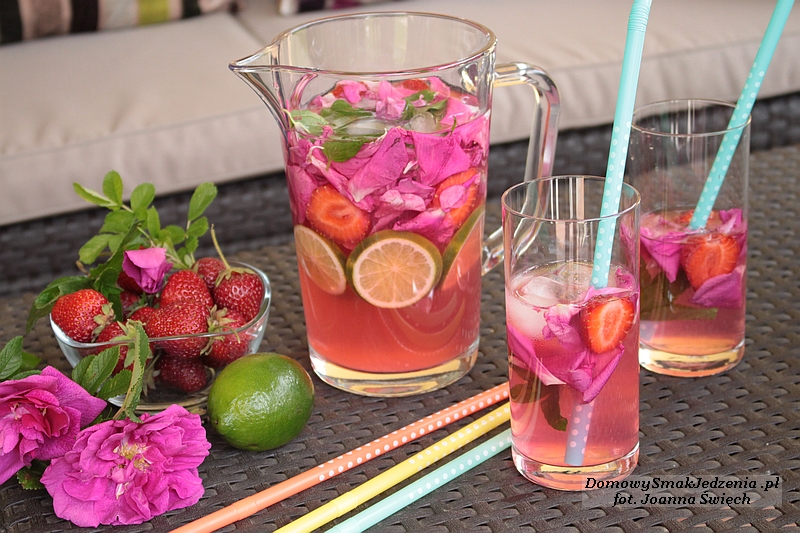 *składniki: 1000 ml wody ok. 25 g świeżych płatków róży 1 limonka…