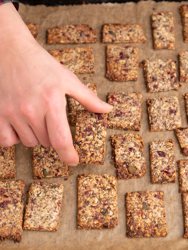 Bezglutenowe krakersy z ziaren Na regalikach w kuchni, mam sporo nasion, orzechów…