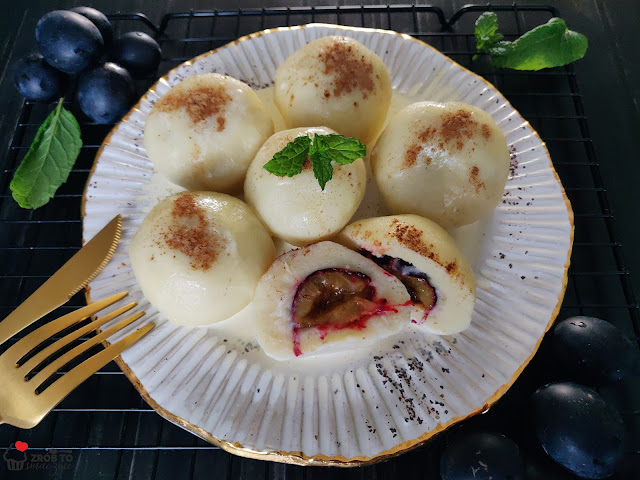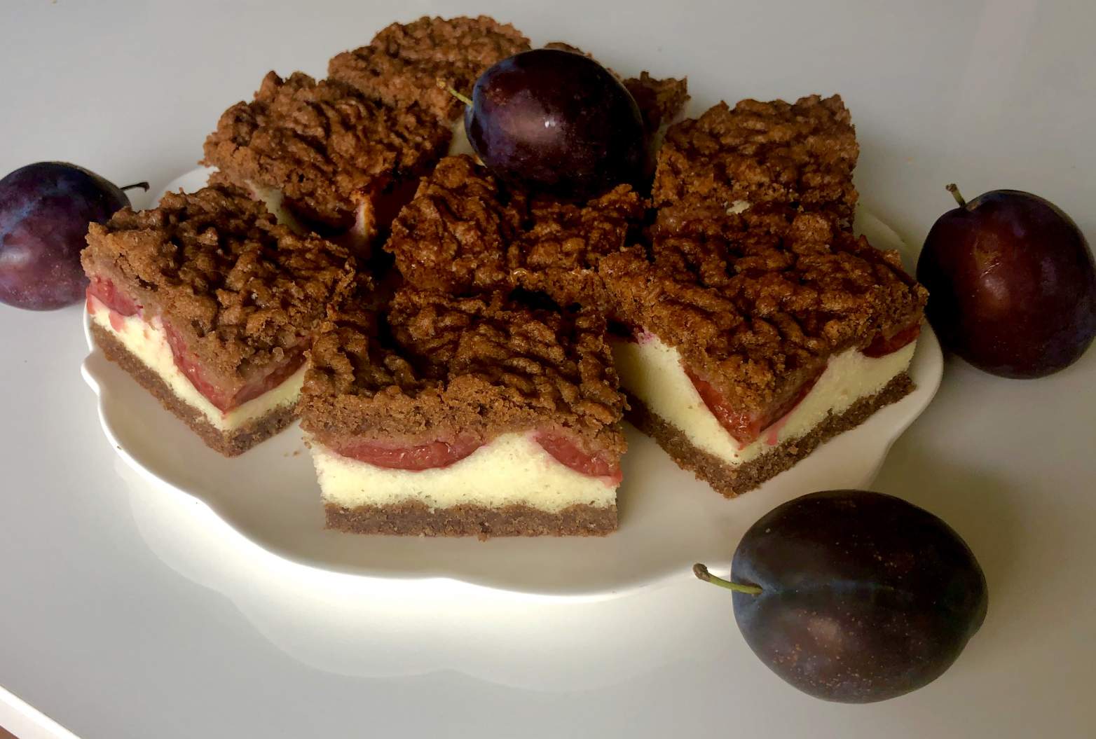 Grysikowiec ze śliwkami Pyszne połączenie kruchego ciasta kakaowego ze śmietankową masą grysikową…