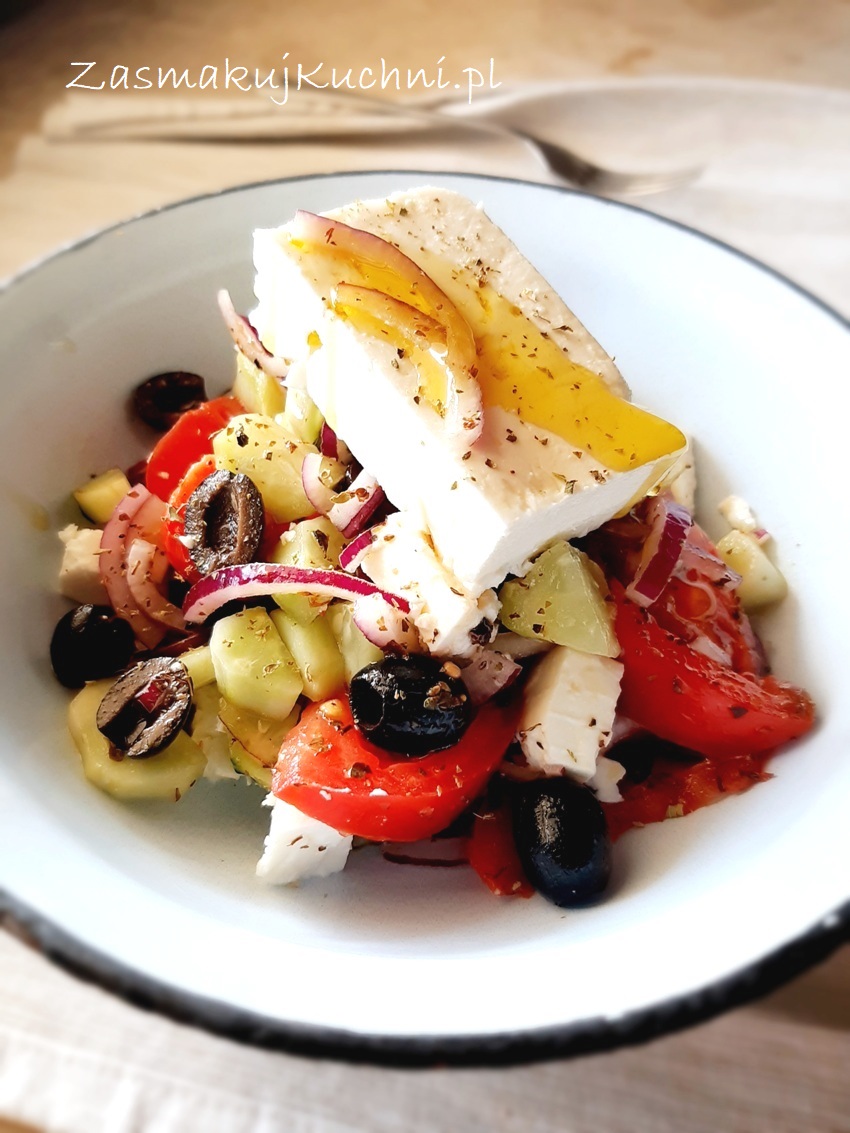 Na sałatkę grecką ze świeżych warzyw, czerwonej cebuli, oliwek i sera feta…