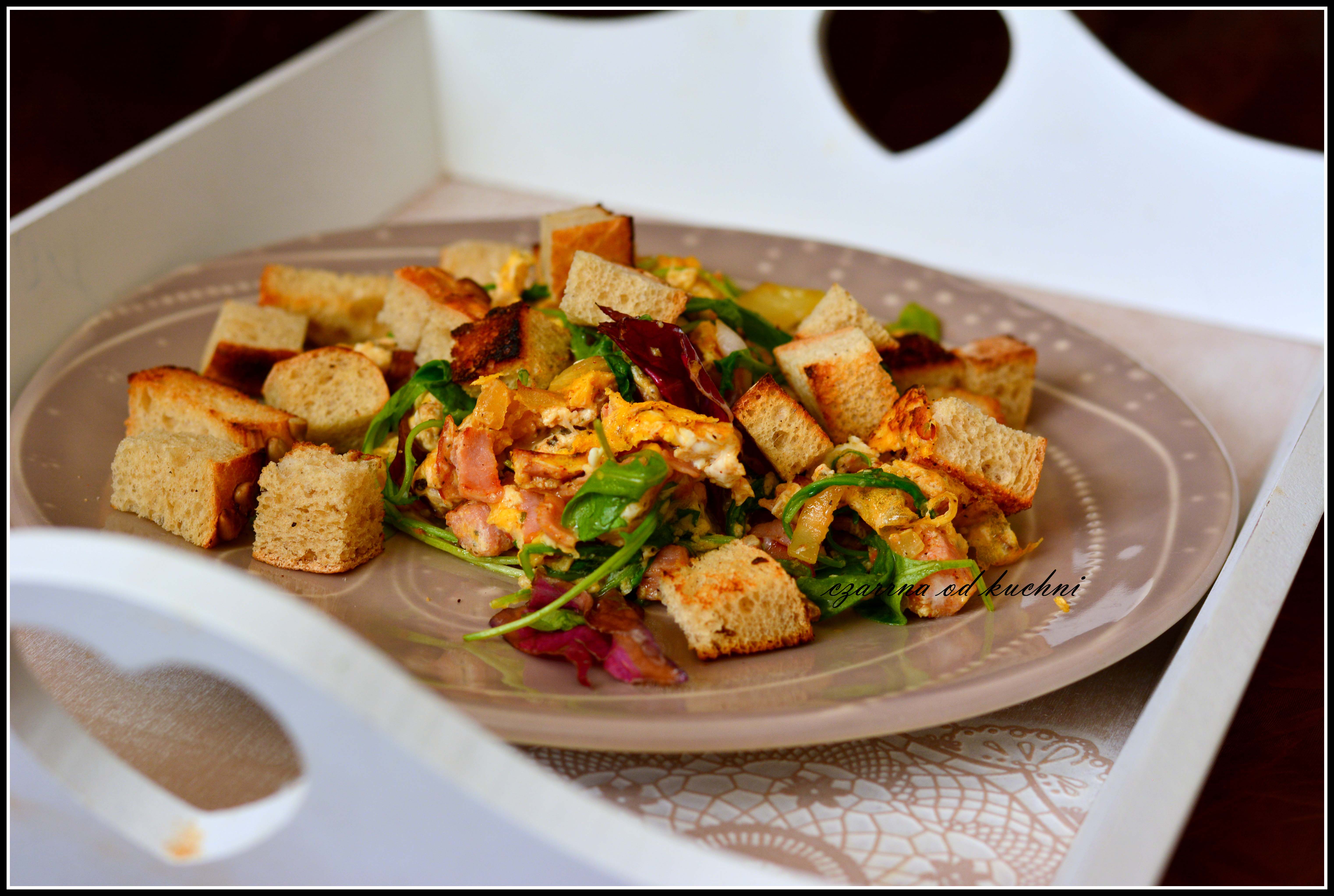 Składniki: 4 jajka garść rukoli 100 g szynki 1 cebula sól, pieprz 1 czerstwa bułka Przygotowanie Bułkę pokroić w kostkę i podsmażyć na chrupiąco na suchej patelni. Cebulę obrać i … Czytaj dalej Jajecznica z grzankami