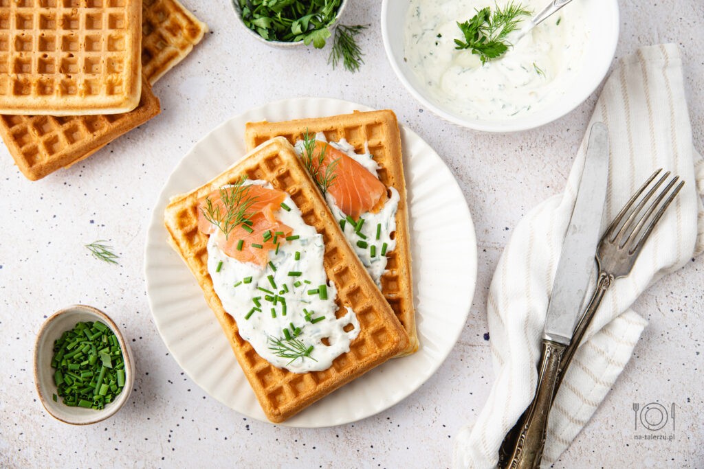 Gofry wytrawne z dipem ziołowym i wędzonym łososiem to pyszny pomysł na…