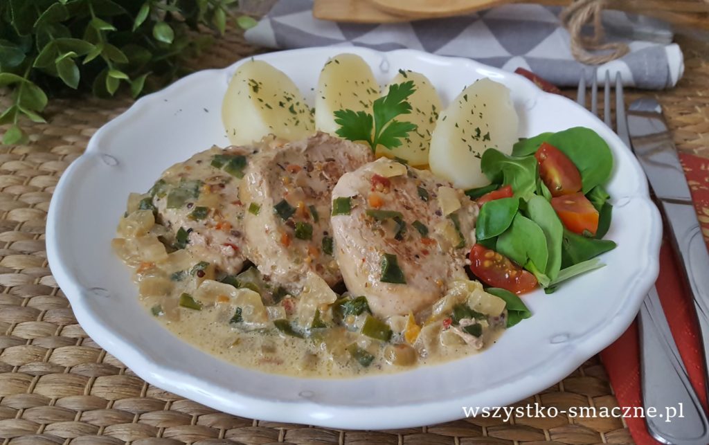 Polędwiczki zamarynowane w pikantnej, aromatycznej przyprawie są miękkie i delikatne, a zatopione w sosie szczypiorkowym na bazie śmietanki smakują wybornie.