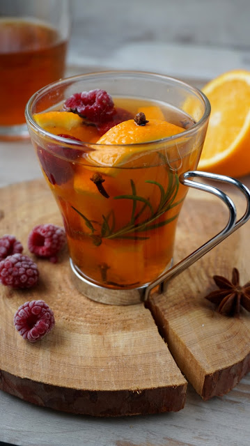 W chłodne jesienne dnie nic nie poprawia nastroju lepiej od gorącego kubka pełnego aromatycznej herbaty z dodatkiem owoców i przypraw. Maliny i pomarańcza dodają napojowi lekko kwaśnego smaku, a rozmaryn i goździki wspaniałego aromatu.