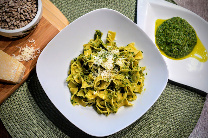 20 min Pesto w innej odsłonie, które każdy może zrobić w domu i to ekspresowo. Pesto z natki pietruszki i nasion słonecznika. To moja trochę spolszczona wersja tego włoskiego przysmaku. Podane z makaronem i serem Grana Padano smakuje wyśmienicie.