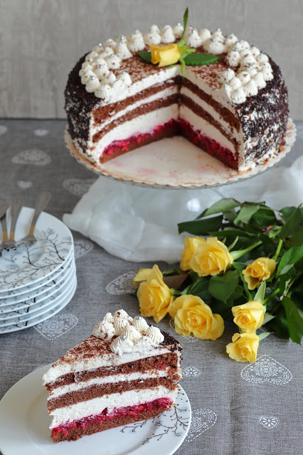 Tort wiśniowy z kremem śmietankowym z białą czekoladą