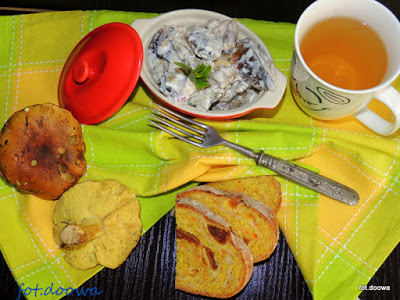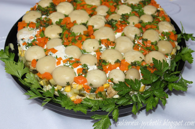 Sałatka z gąsek zielonek, cebulki i śmietany