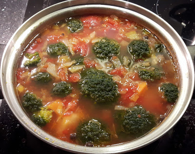 Zupa pomidorowa w trochę ulepszonej wersji z brokułami, makaronem ryżowym, zabielana serkiem…