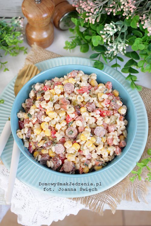 składniki:200 g kabanosa150 g drobnego makaronu250 – 300 g ogórków konserwowych1 duża…
