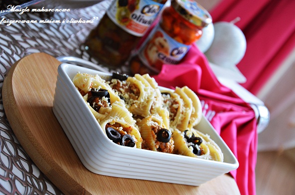 Muszle makaronowe faszerowane mięsem mielonym i czarnymi oliwkami, zapiekane w sosie pomidorowym to pyszne i niezawodne danie. Prostsza wersja bolognese, w dodatku w formie zapiekanki. Do przygotowania zapiekanki wykorzystałam produkty OLE, HELIO Natura ePrezenty