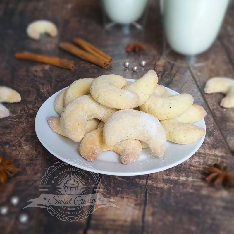 Do tegorocznej kolekcji ciasteczek świątecznych dodałam również kruche, budyniowe rogaliki obtoczone cukrem…
